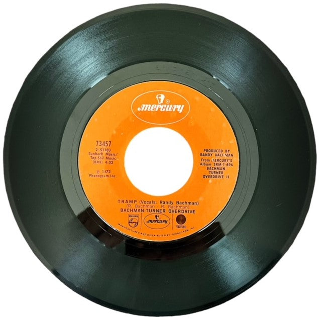 This song was written by BTO members Randy Bachman and Fred Turner with the latter providing lead vocals. The single peaked at number 23 on the U.S. Billboard Hot 100 chart on April 27, 1974, making it BTO's first Top 40 song in the US. The tune was inspired by a traffic incident. While on tour in 1973 supporting The Doobie Brothers, the band was on a highway in their tour bus and got boxed in by a couple of trucks. When the bus and the trucks reached a rest area, the musicians confronted the truck drivers, who responded by saying the band members should settle down and just let it ride. This single is in Very Good Plus condition.