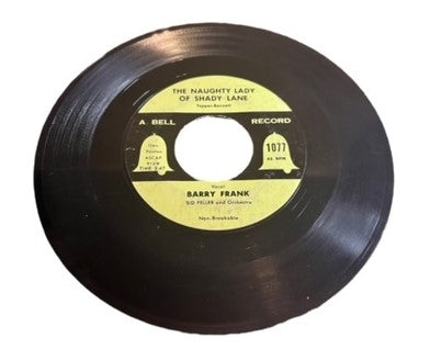 Barry Frank was a smooth-voiced 1950s and early 1960s pop and rock and roll vocalist who professionally recorded numerous 78s, 45s, 33s, and extended play/long play albums for Bell, Columbia, Jubilee, Seeco and other record companies in the United States and Europe. In many cases, Frank covered recordings debuted by other artists. In addition to his solo work, Frank also had a brief stint as the lead singer of the Sammy Kaye orchestra. Sid Feller was an American conductor and arranger, best known for his work with Ray Charles. This single featuring both of them was released on Bell Records in 1955. This single is in Very Good Plus condition.