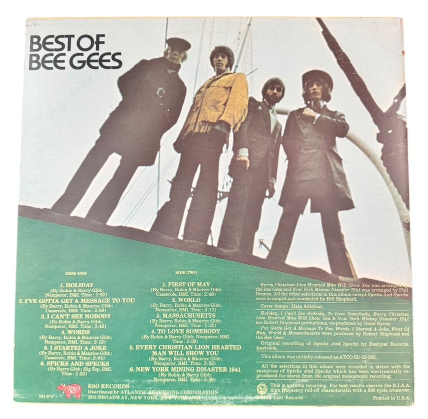 Best of Bee Gees is a 1969 compilation album by the English-Australian rock band Bee Gees. It was their first international greatest hits album. It featured their singles from 1966–1969 with the exception of the band's 1968 single "Jumbo." The hits in this compilation were very popular worldwide and were picked up by many casual fans who owned no other Bee Gees album. This is a 1973 reissue of the album, and both the record and sleeve are in Very Good Plus condition.