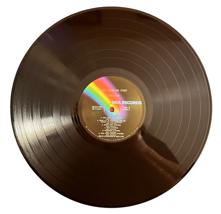 The Bill Anderson Story: His Greatest Hits is a compilation album, released in March 1969. This is a reissue from 1973 with additional material. The Bill Anderson Story is a double compilation album that contains his singles released on the Decca label up to 1968. It features many recordings Anderson issued over the last decade, including several number one hits and top ten hits. The two records are both in Very Good Plus condition. The gatefold sleeve is in Very Good condtion with some minor wear and splitting seams.
