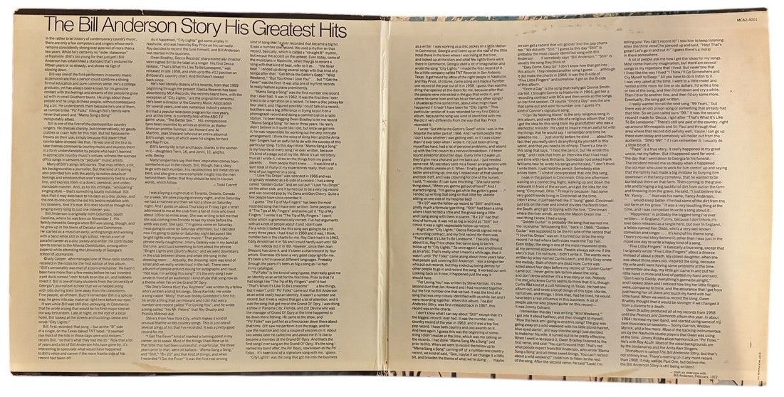 Bill Anderson- The BIll Anderson Story: His Greatest Hits, 1973, VG+/VG (2 Records)
