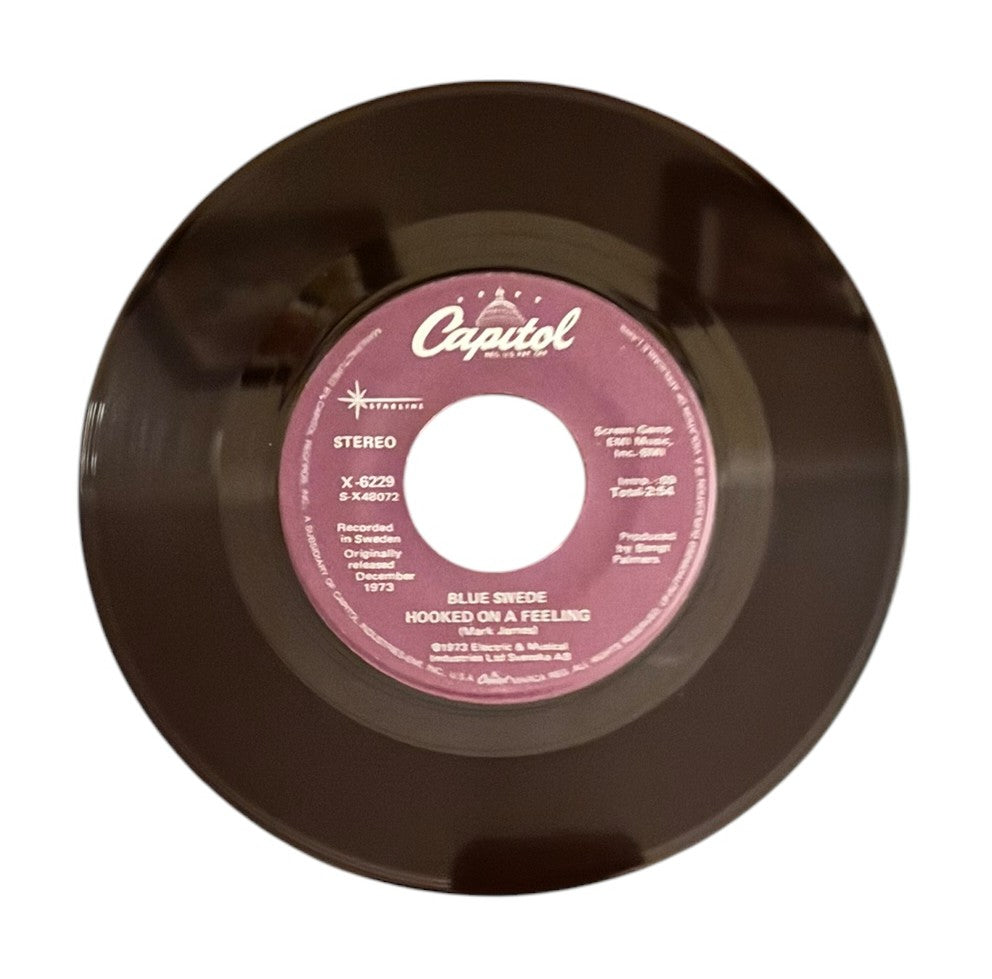 Hooked on a Feeling is a pop song written by Mark James. This version was released by the Swedish pop rock group Blue Swede in 1973. The song went to number one in the US in 1974. This single is in Very Good Plus condition.
