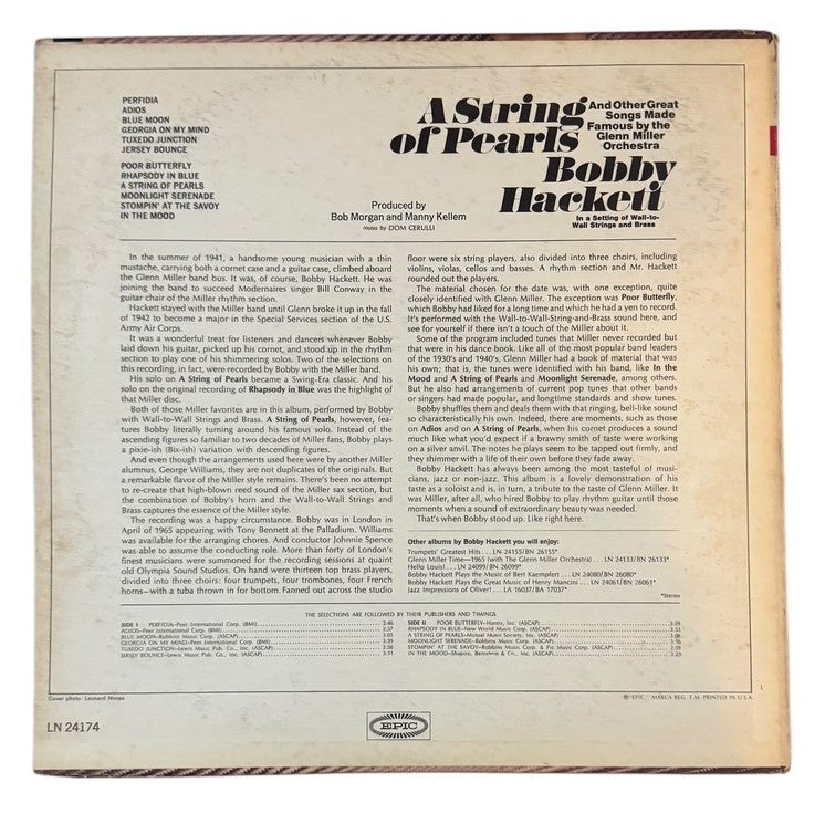 Bobby Hackett- A String Of Pearls, 1965, VG+/VG+ (Promo Copy)