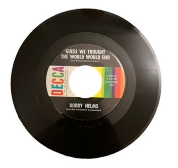 Bobby Helms was an American country singer. Helms began performing as a duo with his brother, Freddie, before going on to a successful solo career in country music. In 1956, Helms made his way to Nashville, Tennessee, where he signed a recording contract with Decca Records, and achieved multiple successes the following year. He released this single, Lonely River Rhine, in 1960. It went to number 16 on the US Country chart. This single is in Very Good Plus condition.