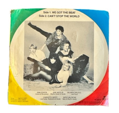 We Got The Beat is a song by the American all-female rock band the Go-Go's, written by the group's lead guitarist and keyboardist Charlotte Caffey. The band first recorded the song in 1980 for a single on UK-based Stiff Records, and later rerecorded it for their debut album Beauty and the Beat on I.R.S. Records. The initial single release brought the Go-Go's underground credibility during their first UK tour and in the band's hometown of Los Angeles. The first version reached number 35 on the U.S. Hot Dance Club Play chart due to its popularity in clubs as an import, and the second version, this version, was a top 10 hit in both the United States and Canada. It is considered a new wave classic hit, as well as being the Go-Go's' signature song. This single, and its original picture sleeve, are in Very Good Plus condition.