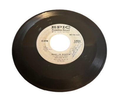 Jaycee Hill was an American rockabilly musician. He was born in Tennessee, but soon moved to Cleveland, Ohio, and then to Valley View, Ohio, where he graduated from high school. With his friend Joe Sway, he formed the duo Hill & Joes, The Valley Boys and began performing on radio and television around Cleveland. After Elvis Presley gave his first performance north of the Mason-Dixon Line in Cleveland, Baker and Sway enthusiastically switched to rockabilly. On June 3, 1956, the two recorded four tracks at Audio Recording Studio in Cleveland, including Romp Stompin' Boogie and A Love So Fine, which were released that same year on Epic as Jaycee Hill accompanied by Joe Sway. After good record sales, producer Joe Sherman invited Hill to a session in New York City, this time without Sway, who had dropped out earlier. There, Hill recorded more tracks with the city's best musicians. This song, Made In Heaven, was released in 1957. This promo single is in Very Good condition.