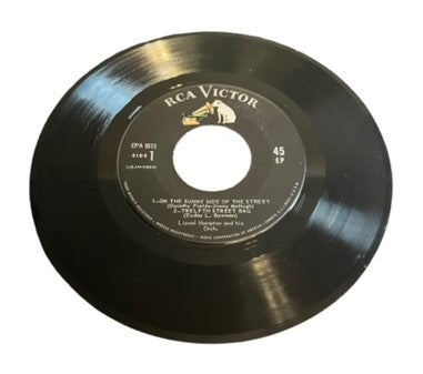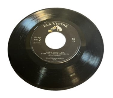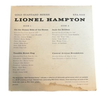 Lionel Hampton was an American jazz vibraphonist, percussionist, and bandleader. He worked with jazz musicians from Teddy Wilson, Benny Goodman, and Buddy Rich, to Charlie Parker, Charles Mingus, and Quincy Jones. In 1992, he was inducted into the Alabama Jazz Hall of Fame, and he was awarded the National Medal of Arts in 1996. He released this 7" vinyl EP in 1958. There are four songs on the record. This record is in Near Mint condition, and its original picture sleeve is in Very Good Plus condition. (The sleeve is cardboard.)