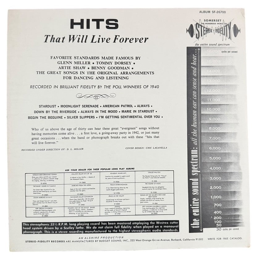The 1940 All-Star Dance Orchestra- Hits That Will Live Forever, 1960s, VG+/VG+