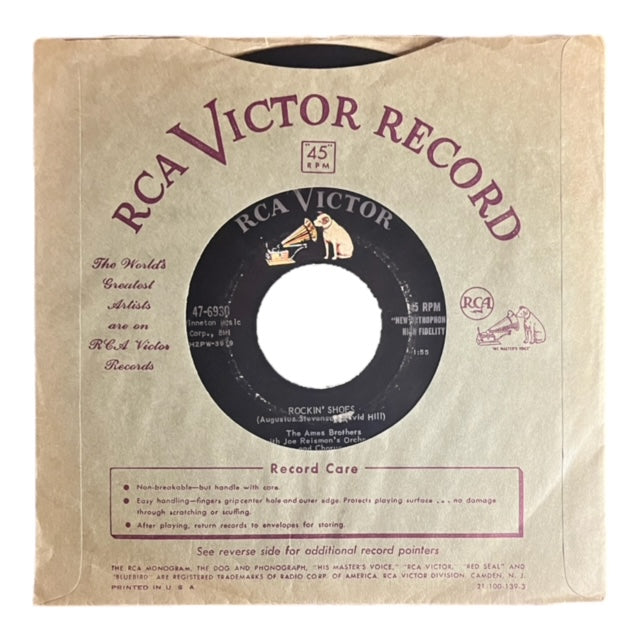 Joe Reisman's Orchestra and Chorus performed on this single with The Ames Brothers. The Ames Brothers were an American singing quartet, consisting of four siblings from Malden, Massachusetts, who were particularly famous in the 1950s for their traditional pop hits. Both the A and B sides of this single charted in 1957 when this single was released. This single is in Very Good condition and comes with an RCA Victor record company sleeve.
