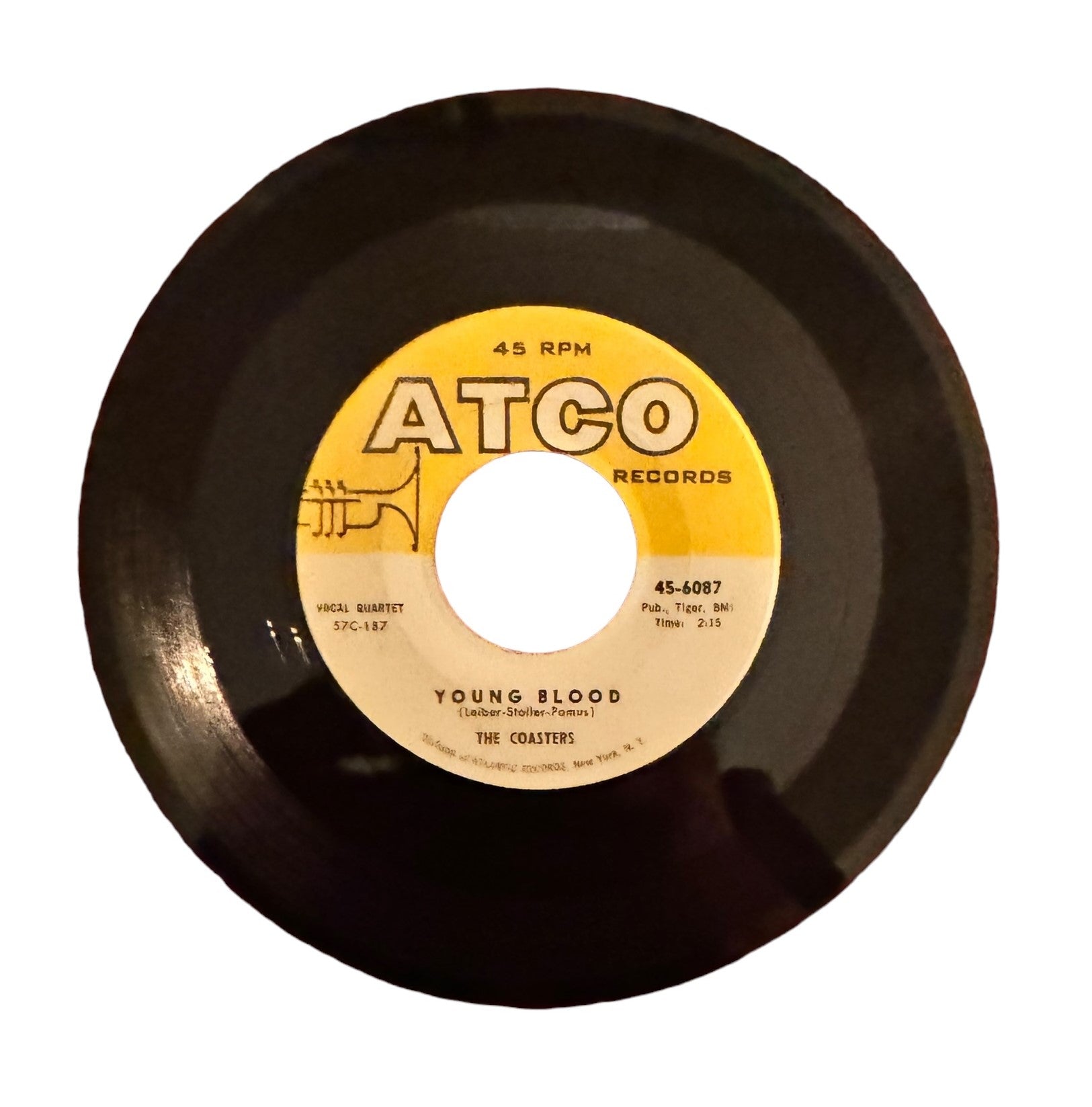 Young Blood is a song written by Doc Pomus along with the songwriting team Jerry Leiber and Mike Stoller that first became a hit by The Coasters upon its release in 1957. Musically, the song follows a minor blues structure, built mostly around three chords (i7, iv7, V7) except for the bridge (IV, VI, III, V). This single is in Very Good Plus condition.