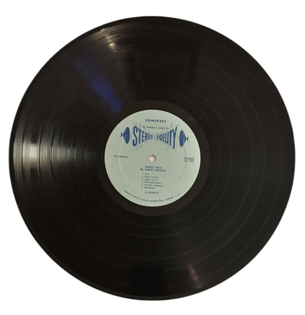 This album by The New World Theatre Orchestra was released in the 1950s. It is an album full of easy listening and soft jazz songs meant to be danced to by different kinds of ballroom dances. It contains songs for the fox trot, bossa nova, cha-cha, fox trot blues, frug/hully gully, swing, and twist dances. This record and its sleeve are both in Very Good Plus condition.
