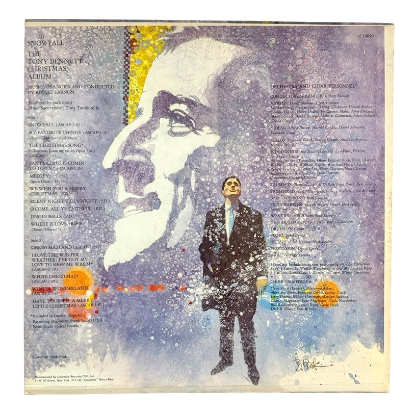 Snowfall: The Tony Bennett Christmas Album is a 1968 studio album by Tony Bennett, his first Christmas album. It was arranged and conducted by Robert Farnon. Even though they had been friends since the early 1950s, Bennett and Farnon had not recorded together before, Bennett having such reverence for Farnon's work that he felt he "wasn't ready...(and) not developed enough as an artist to record with him." Farnon, who normally recorded in London, came to New York City for one of the two sessions that produced this album. Six tracks were recorded at Columbia's recording studios in New York City, and four in London. This record is a 1987 reissue. This record and its sleeve are in Very Good Plus condition.